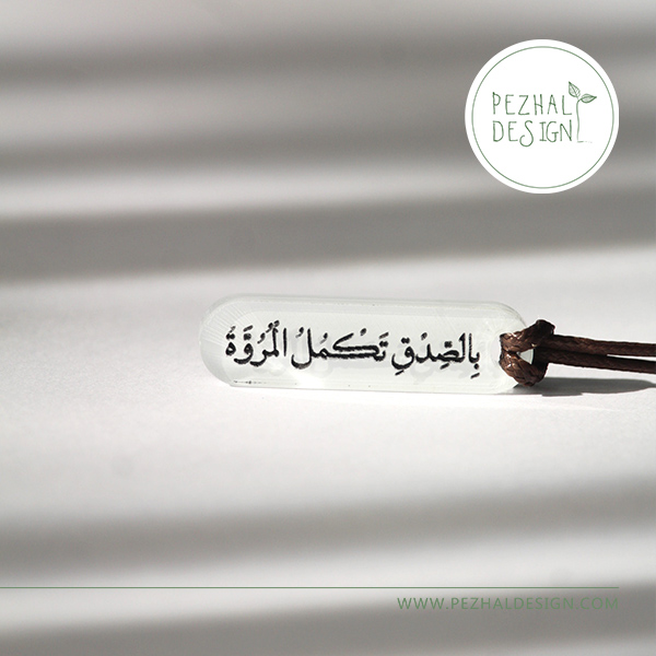 گردنبندی ساده و خوش‌ساخت از جنس پلکسی، با حکاکی سخن امام علی (علیه السلام )؛ نمادی زیبا از صداقت و اصالت مردانه.